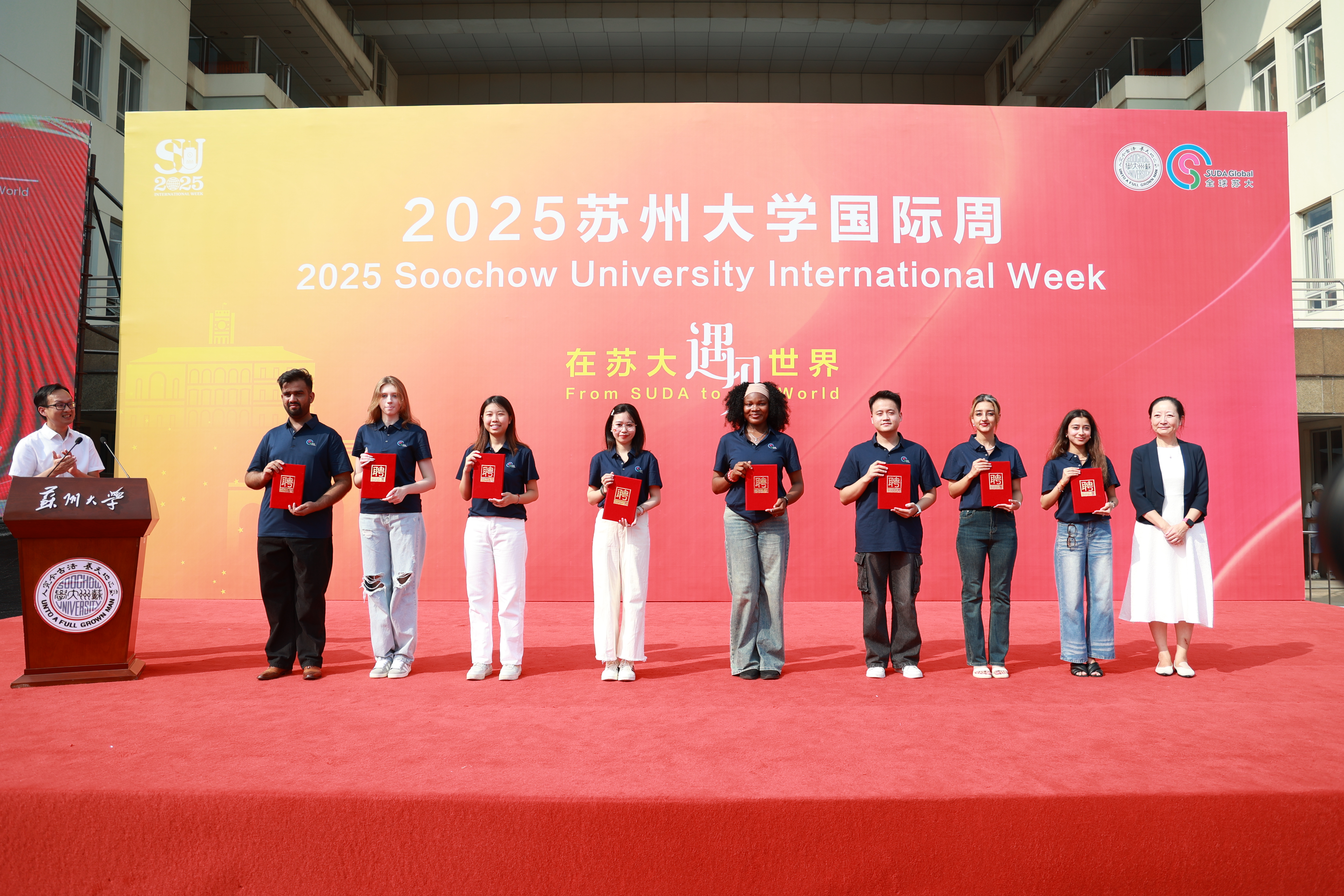 现场还举行了苏州大学国际学生宣传大使聘任仪式,为国际学生宣传大使颁发聘书。苏州市人民政府外事办公室与学校国际合作交流处共同签署国际学生志愿服务备忘录,并为2025年度国际学生志愿者代表颁发证书。