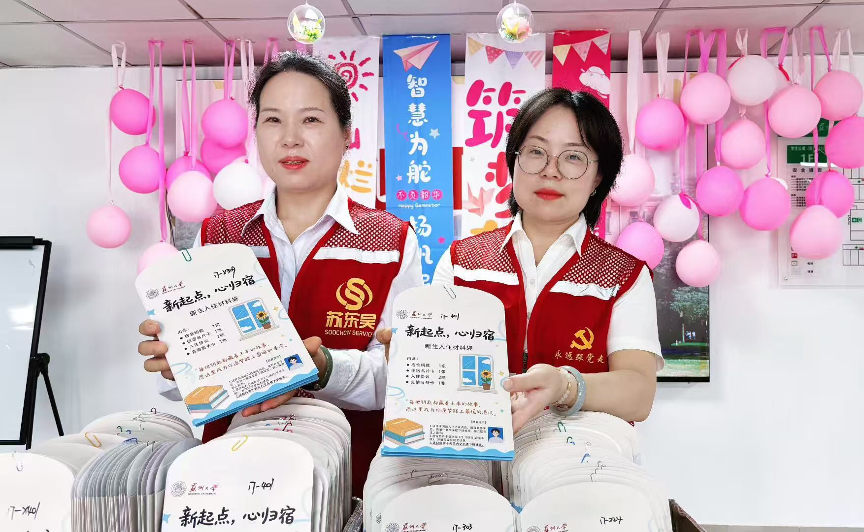 报到现场实现“数字化迎新”,学生出示录取通知书后,只需打开手机上的“云中苏大”APP签到即可完成身份核验、物品领取等所有流程。学校专门开设了“绿色通道”,并备好爱心礼包和“苏大第一餐”,预申请学生1500余人,可“一键式”“一站式”办理缓交学费、助学贷款。据悉,今年学校还向暑期灾害性天气中受灾学生每人发放助学金2500元。