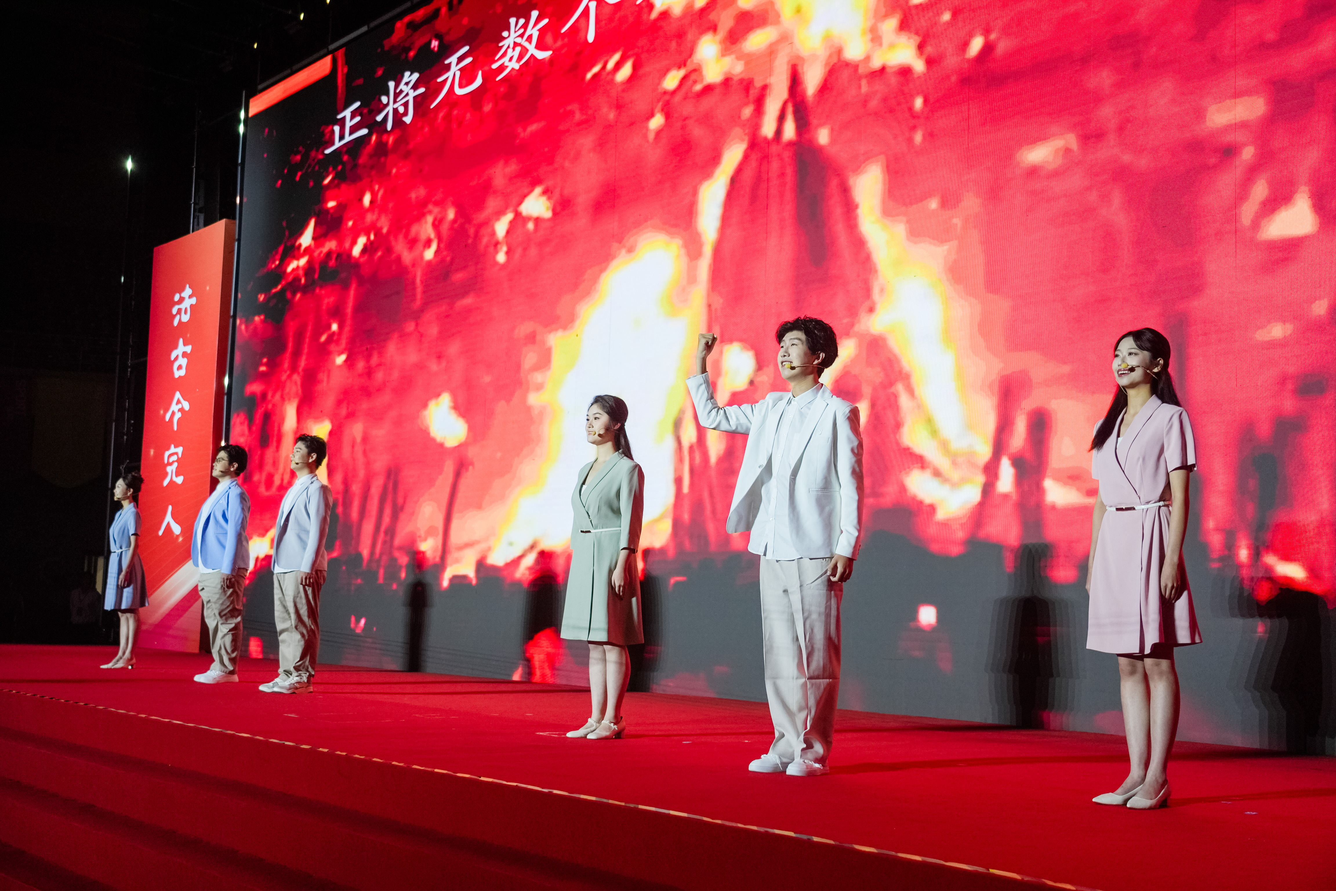 竹笛悠悠、空灵悠远,艺术教育中心教师马述谏用一曲《水乡船歌》勾勒出烟雨江南的灵秀画卷。诗朗诵《天赐情怀》讴歌了苏大人薪火相传的人文精神与赤子情怀。由音乐学院教师卞浩雄、卓琳倾情演唱的《领航》,以磅礴气势汇聚出开创未来的奋进力量。