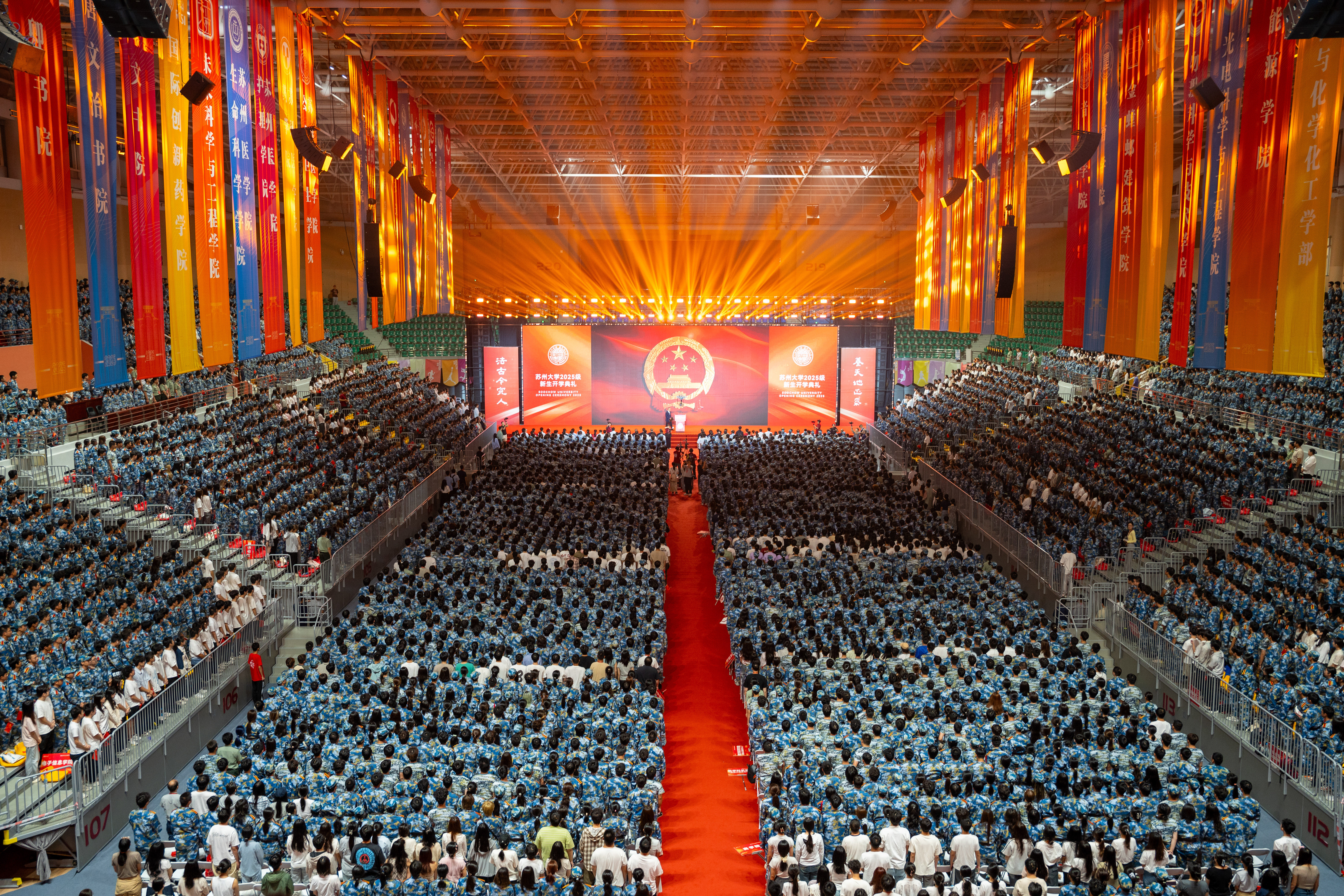 九月晨光,破暑而至。9月20日上午,苏州大学2025级新生开学典礼在学校文体中心举行。来自五湖四海的新同学们眼中充满期待,踏入典礼会场,憧憬着全新的人生征程。