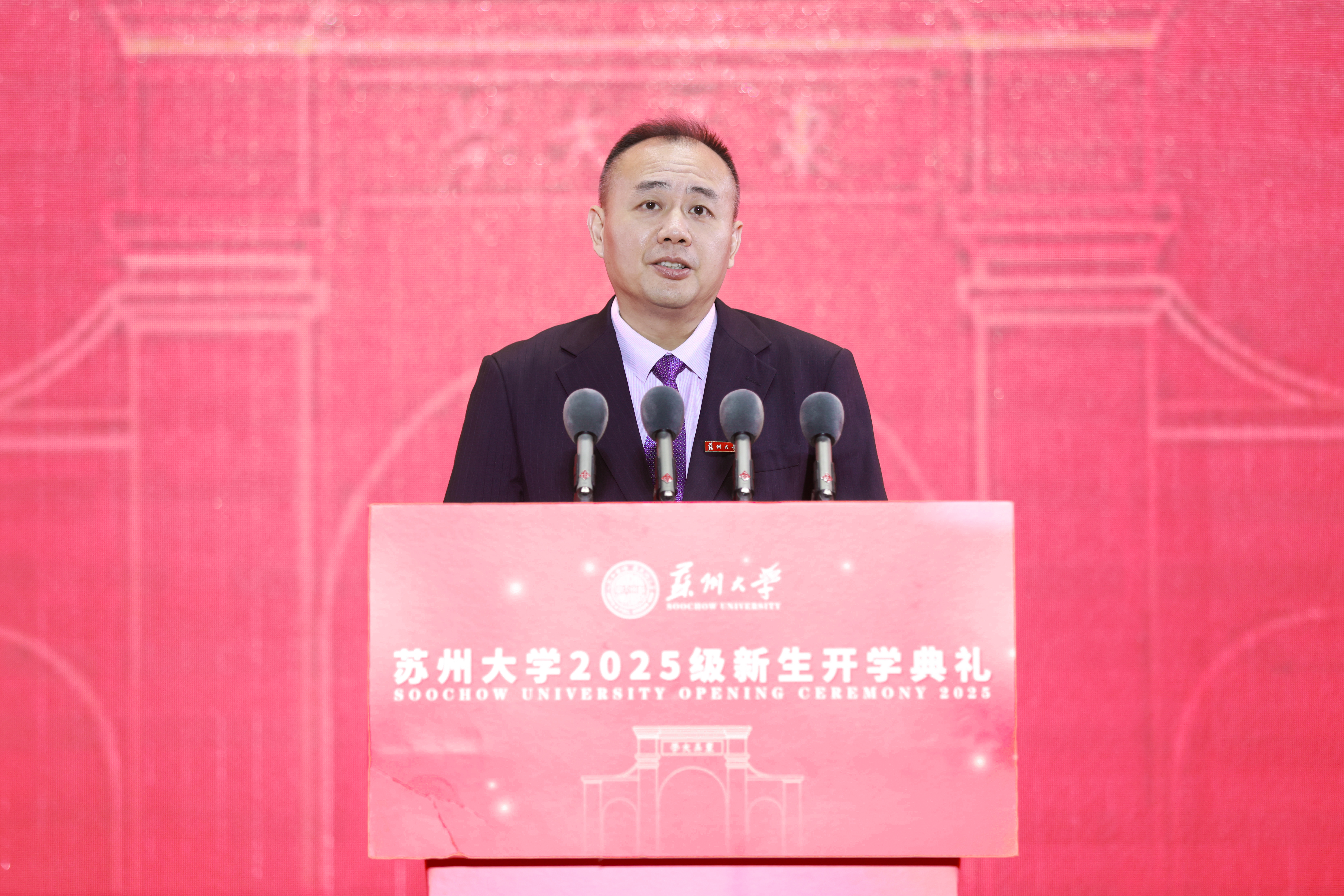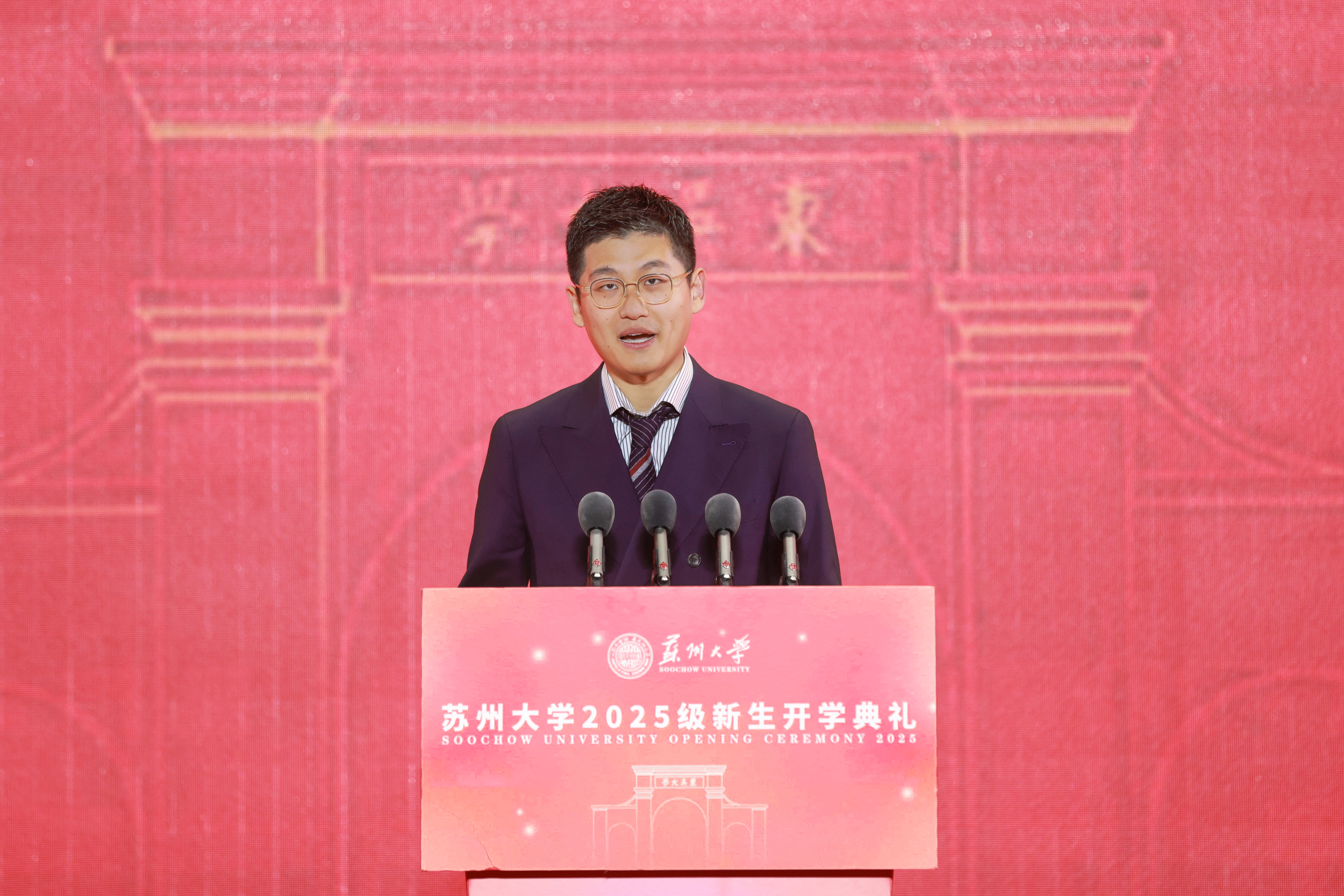 开学典礼上,张桥以《日拱一卒,在苏大成为更好的自己》为题,为新生们讲授“开学第一课”。