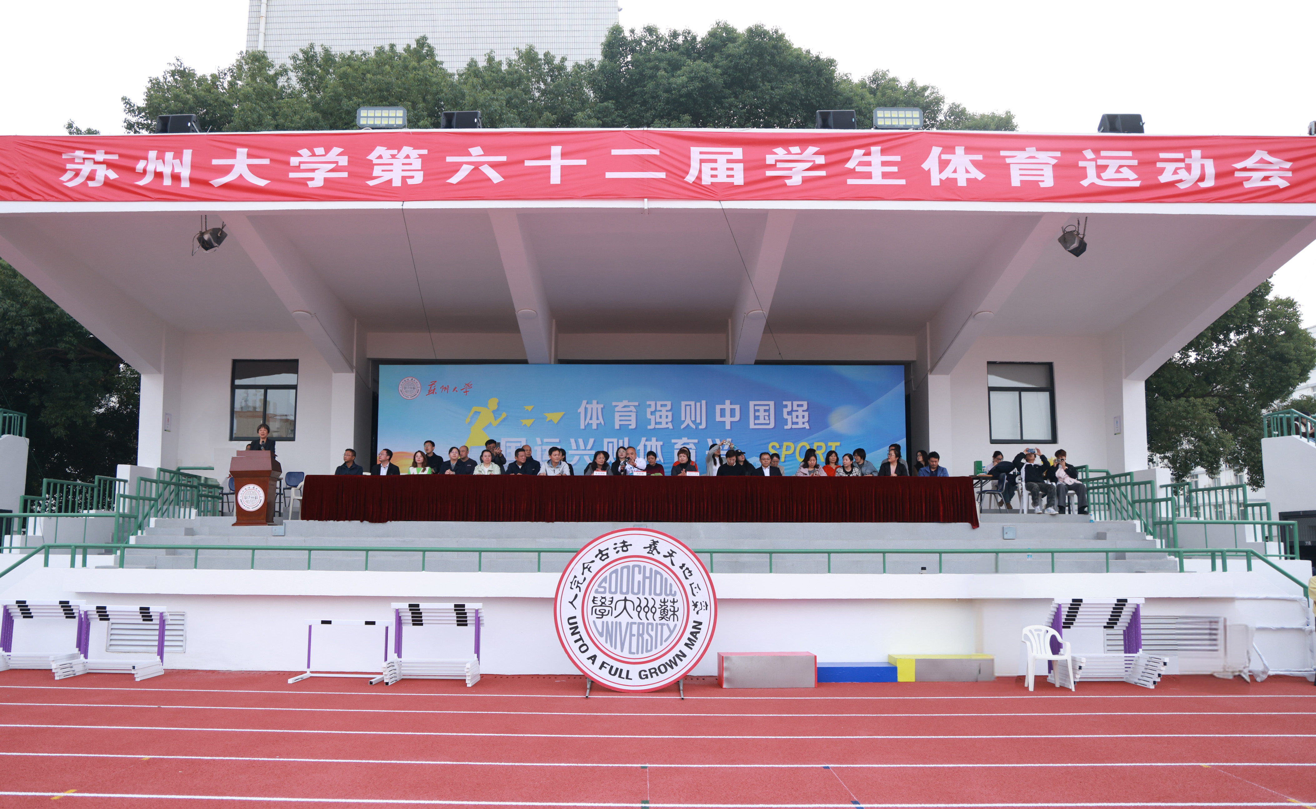 10月31日上午,我校第六十二届学生体育运动会举行。校长张桥,党委常委、副校长姚建林、查佐明、王云杰,苏州苏大教育服务投资发展(集团)有限公司董事长、总裁韦曙和,以及各职能部门和各学院(部)主要负责人出席本次运动会开幕式。开幕式由查佐明主持。