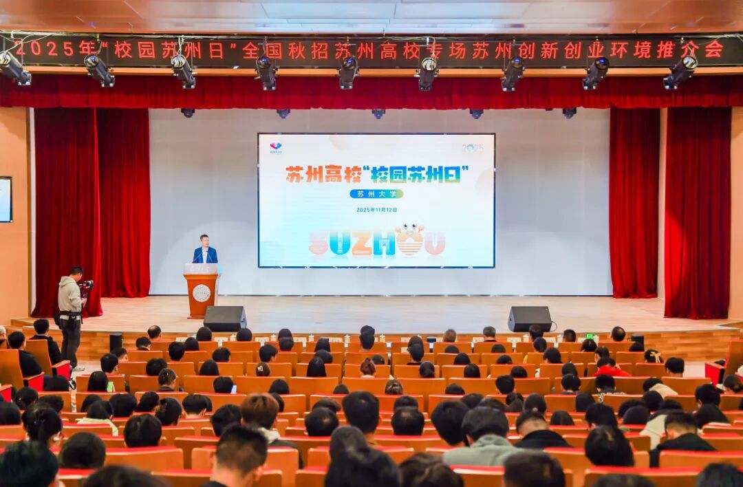 11月12日,2025年“校园苏州日”全国秋招活动在我校举行。苏州市委常委、组织部部长祁松,我校校长张桥,党委常委、副校长查佐明出席活动。我校及苏州科技大学、苏州工学院、西交利物浦大学、昆山杜克大学、苏州城市学院、江苏科技大学苏州理工学院、中国人民大学苏州校区、哈工大苏州研究院、南京大学苏州校区、中国科学技术大学苏州高等研究院等苏州高校2026届毕业生参加活动。
