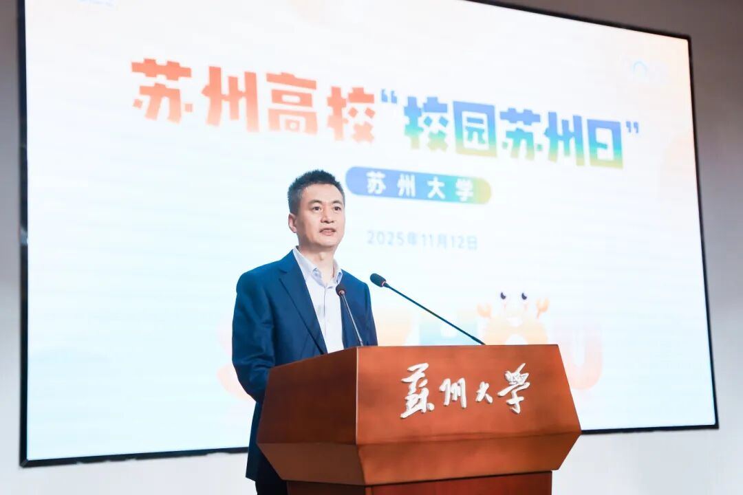 祁松在致辞中表示,苏州大学作为苏州本土的著名高校,是苏州发展的“人才蓄水池”和“创新策源地”。近年来每年都有近半数本地高校毕业生留在苏州创新创业创富,这份“家门口”的信任与选择,正是我们做好人才服务的最大动力。苏州有“崇文重教”的历史基因、“中国智造”的产业蓝图、“筑梦之城”的现实基础,诚邀每一位学子选择留在苏州,将苏州作为事业发展的新起点,苏州期待做广大学子的合伙人、贴心人,竭尽所能守护好大家成长的每一步。